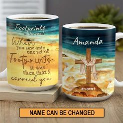 | Footprints In The Sand | Personalized Cross Ceramic Mug | Thoughtful Gift For Christian Relatives CCMNUHN490