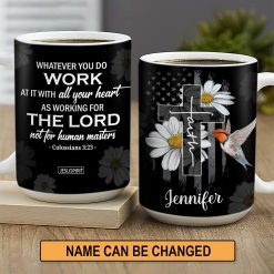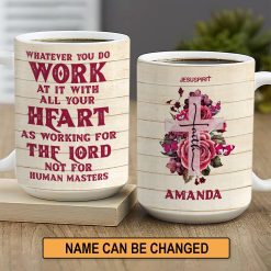 | Whatever You Do Work At It With All Your Heart | Faith Cross & Rose | Personalized White Ceramic Mug HN135