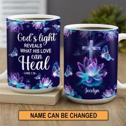 | Personalized White Ceramic Mug | Luke 1:79 | Lotus & Butterfly | God’s Light Reveals What His Love H27