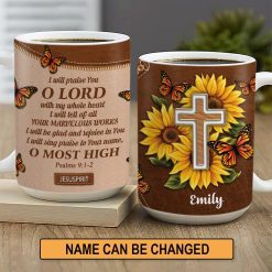 Lovely Personalized Sunflower White Ceramic Mug – I Will Be Glad And Rejoice In You NUH297
