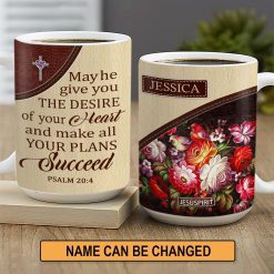 May He Make All Your Plans Succeed – Personalized Flower White Ceramic Mug NUM308