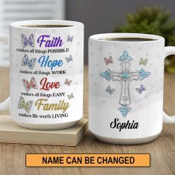 Awesome Personalized White Ceramic Mug – Faith, Hope, Love H07