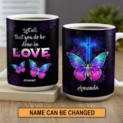 | 1 Corinthians 16:14 | Cross And Butterfly | Let All You Do Be Done In Love | Personalized Ceramic Mug CCMH707