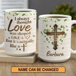 Love Is Actually Like A Cross – Pretty Personalized Flower And Cross White Ceramic Mug NUHN222A