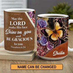 Lovely Personalized Flower White Ceramic Mug – May The Lord Make His Face Shine On You And Be Gracious To You NUH317