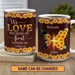 We Love Because He First Loved Us – Meaningful Personalized White Ceramic Mug NUM444