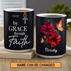 By Grace Through Faith – Pretty Personalized White Ceramic Mug H14