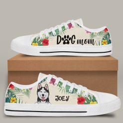 Dog Mom Tropical Pattern Customized White Low Top Shoes
