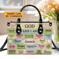 | Personalized Leather Handbag With Zipper | Inspirational Gift Christian Ladies | Wonderfully And Fearfully Made | Psalm 139:14 LHBHN810