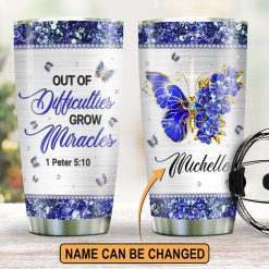 Gorgeous Personalized Floral Butterfly Stainless Steel Tumbler 20oz – Out Of Difficulties, Grow Miracles NUA1571