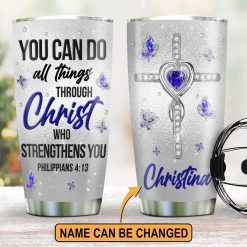 Elegant Personalized Jesus Stainless Steel Tumbler 20oz – You Can Do All Things Through Christ NUA184