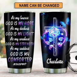 Personalized Stainless Steel Tumbler 20oz | At My Lowest God Is My Hope | Rose And Cross | Ideal Gift For Christians HN133