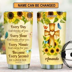| Personalized Sunflower Stainless Steel Tumbler 20oz | Everyday God Thinks Of You | Cross And Butterfly SSTHN605