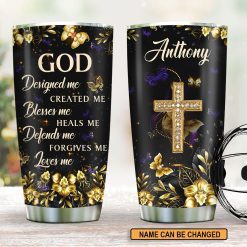 Beautiful Personalized Cross Stainless Steel Tumbler 20oz – God Designed Me AM268