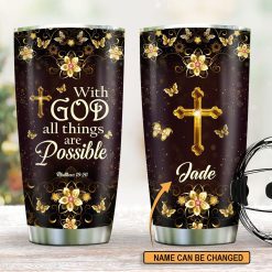 Special Personalized Cross Stainless Steel Tumbler 20oz – With God All Things Are Possible NM125